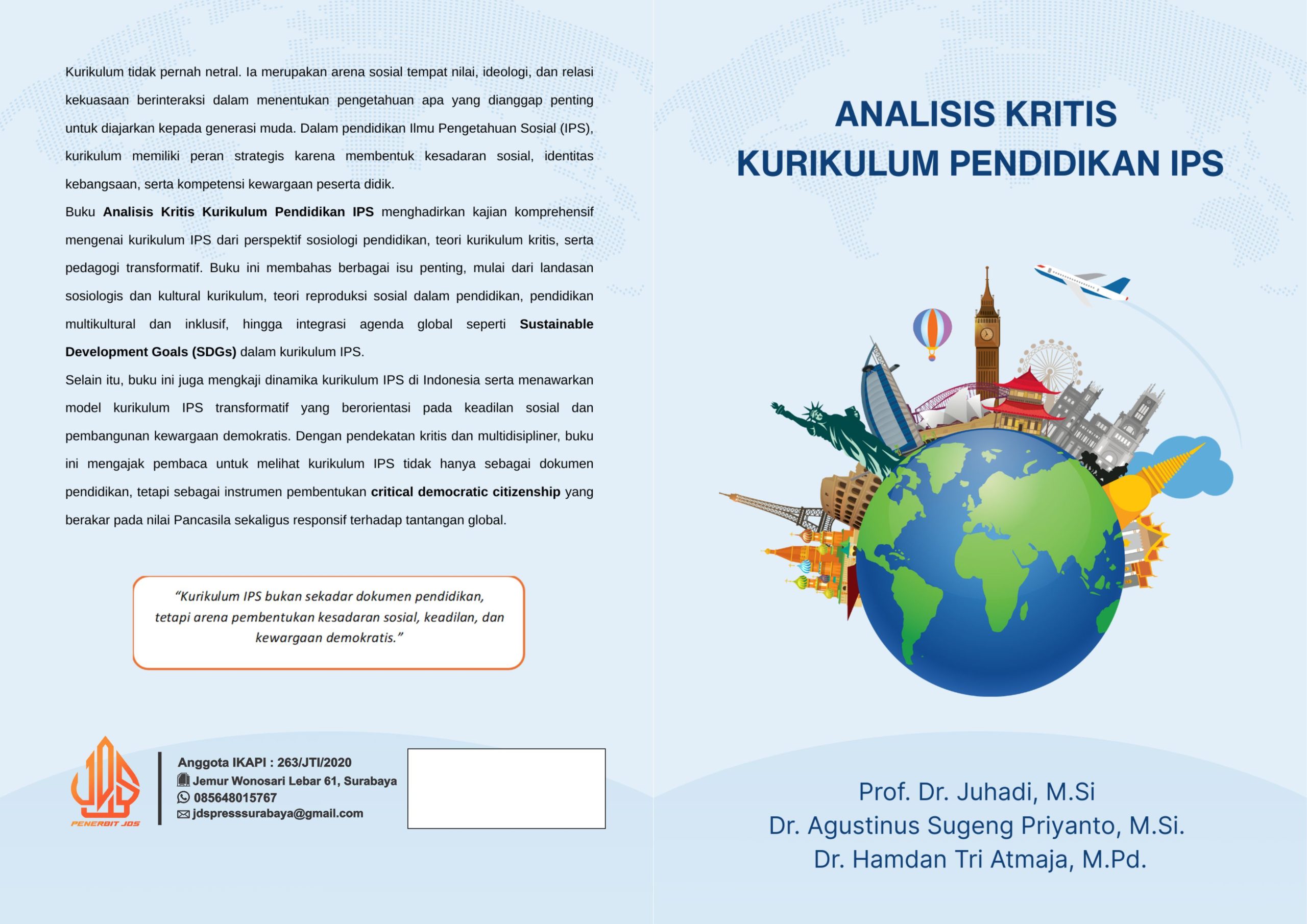 Penulis : Prof. Dr. Juhadi, M.Si, Dr. Agustinus Sugeng Priyanto, M.Si. dan Dr. Hamdan Tri Atmaja, M.Pd.